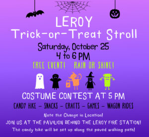The Leroy Rec Board volunteers put on community events such as the Spring and Fall Garage Sales, the Easter Egg Hunt and Trick-or-Treat Stroll, as well as Summer Concerts and Township Days.